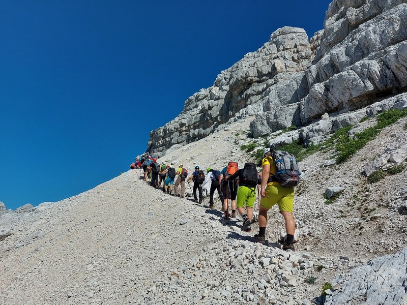 Sledil je nekoliko zahtevnejši vzpon na sam vrh, ki smo ga ob povečani previdnosti varno dosegli. Po zasluženem odihu smo se po poti pristopa varno vrnili na D postajo žičnice.