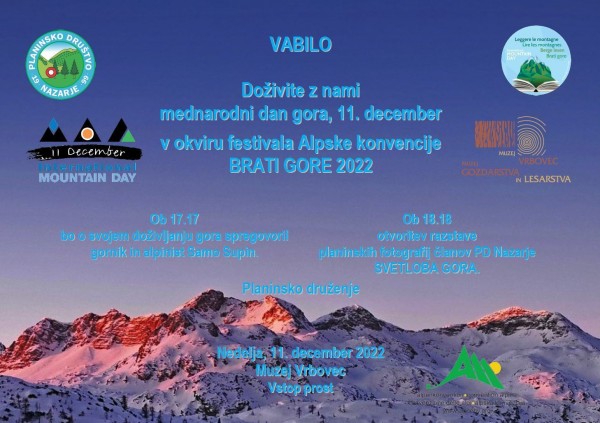 Tudi letos se bomo pridružili festivalu Alpske konvencije BRATI GORE. Mednarodni dan gora bomo obeležili z dvema povezanima dogodkoma.