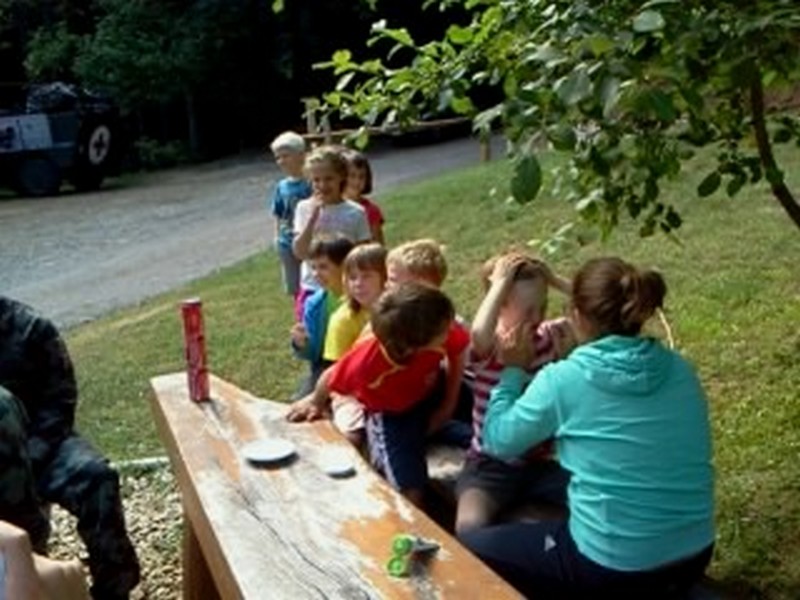 Tretji dan smo se prebudili v sončno jutro. Pred zajtrkom smo na hitro opravili zanimivo jutranjo telovadbo, obarvano z igro ˝Farbanca˝ (črni mož). Po zajtrku pa so nas obiskali pripadniki VZE – SLOVENSKE VOJSKE. Pripeljali so z valogom (zdravniško vozilo slovenske vojske). Naj prej je sledila kratka predstavitev in ogled le tega, nato pa še maskiranje z vojaškimi barvami. Sledilo kosilo in po kosilu vodno presenečenje. Najprej igranje z vodnimi baloni, nato pa še obisk gasilcev, ki so nas vse lepo umili z gasilno cevjo polno z vodo. Vsi umiti smo se odpravili na slastne palačinke. Polni nove energije pa smo se odpravili na kratek nočni pohod.