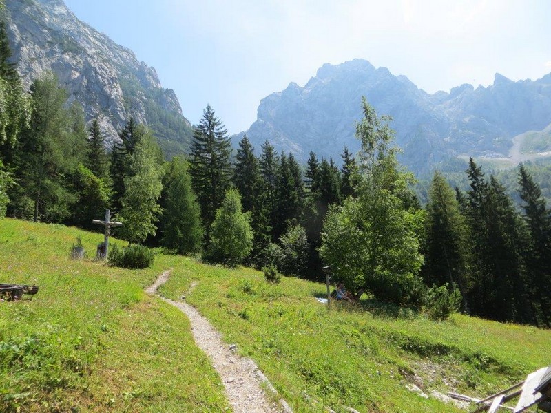 V nedeljo, 19. julija smo se odpeljali v Logarsko dolino, kjer smo pri hotelu Plesnik pustili naše avtomobile. Dokaj strma in ne preveč obhojena pot nas je najprej peljala do Plesnikove planine, kjer smo si ob čudovitih pogledih na okoliške dvatisočake privoščili prvo daljšo pavzo.