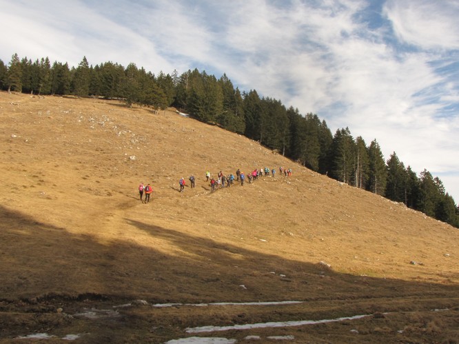 V lepem sončnem dnevu smo se odpravili proti Gorenjski. V kraju Brezje pri Tržiču je bilo udobne vožnje konec in devetindvajset pohodnikov je zagrizlo v strmino. Po dobrih treh urah hoje smo uspeli premagati 900 metrov višine in stali smo vrhu Dobrče.